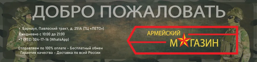Добро пожаловать в интернет-магазин «Army22» – Ваш надежный проводник в мир военного и туристического снаряжения! Мы заботимся о каждом покупателе и предлагаем только проверенные товары для военнослужащих, сотрудников правоохранительных органов, учащихся кадетских классов, а также для любителей охоты, рыбалки, страйкбола и активного отдыха на природе. Уже более 10 лет тысячи покупателей выбирают нас, потому что мы предлагаем: